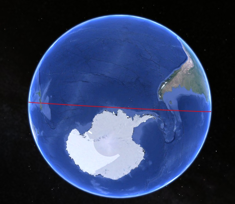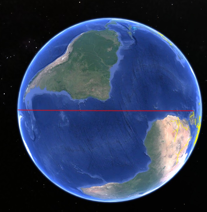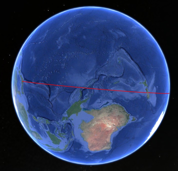 地球は球体だから厳密にはそんな直線にならないけどな