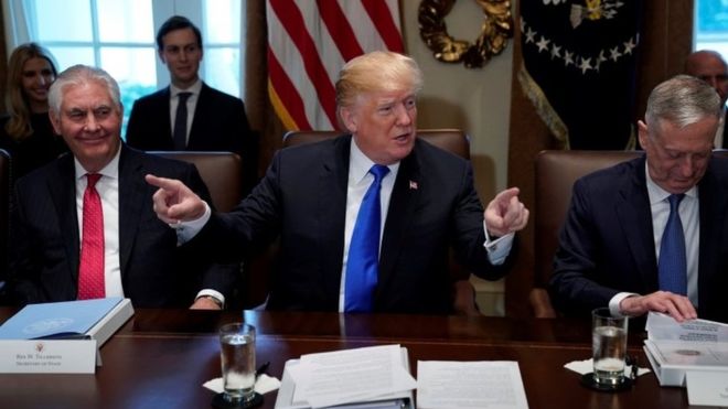ドナルド・トランプ米大統領は20日、21日に開かれる国連総会でエルサレムをイスラエルの首都と認定した米国の決定に反対する決議案の採決をめぐり、賛成票を投じる国への援助を停止すると警告した。トランプ氏はホワイトハウスで記者団に対し、「何億ドル、何十億ドルももらっておきながら、我が国に反対票を投じている」と話した。決議草案では米国を名指しはしていないものの、エルサレムに関するあらゆる決定を撤回するべきだと述べている。エルサレムの帰属問題は、イスラエルとパレスチナの紛争の焦点となっている。米国以外の安保理の14理事国は賛成票を投じたが、ヘイリー氏は「侮辱」だと語った。(BBC)